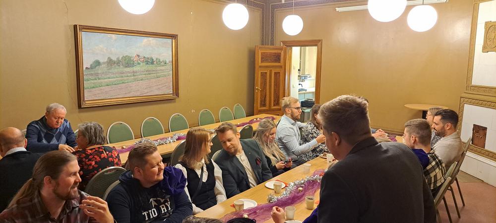 Tunnelma oli todella lämminhenkistä ja tarjolla olleet glögi ja jouluiset pikkueväät maistuvat vieraile. Paikalla oli runsaasti niin opiskelijoita kuin isoja insinöörejäkin.